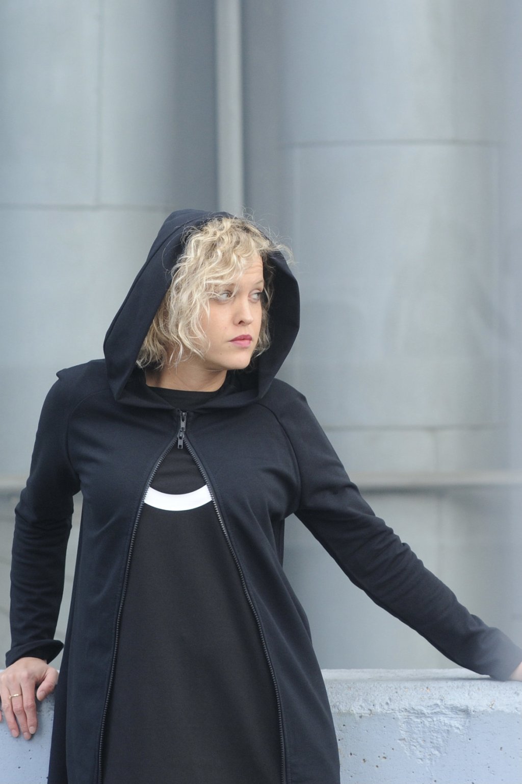 Mikina je rovného střihu. Dlouhý raglánový rukáv. Boční kapsy. Oboustranný zip (otevřete zhora i zdola).