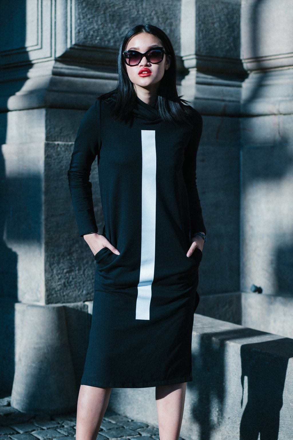 Potisk GLITTER se krásně třpytí, hodí se na slavnostnější chvíle a dodává šatům punc vyšší elagance. Šaty jsou rovného střihu. Dlouhý raglánový rukáv. Boční kapsy. Rozparky po stranách.