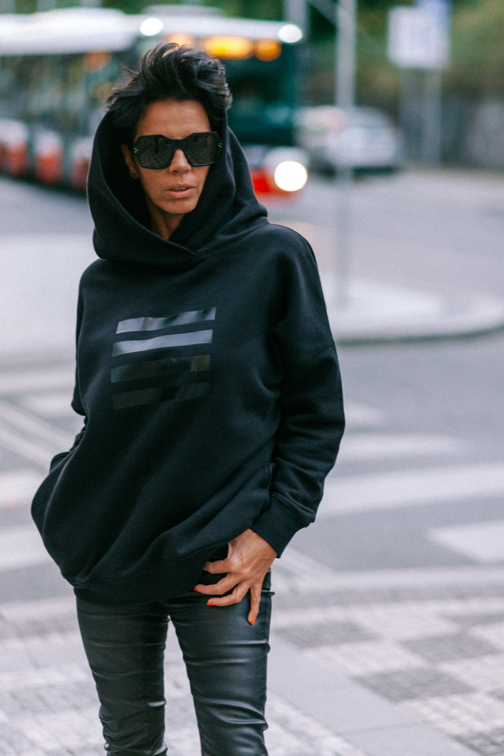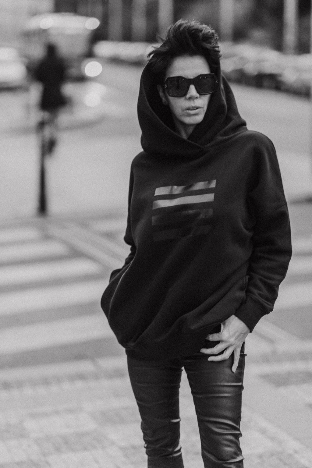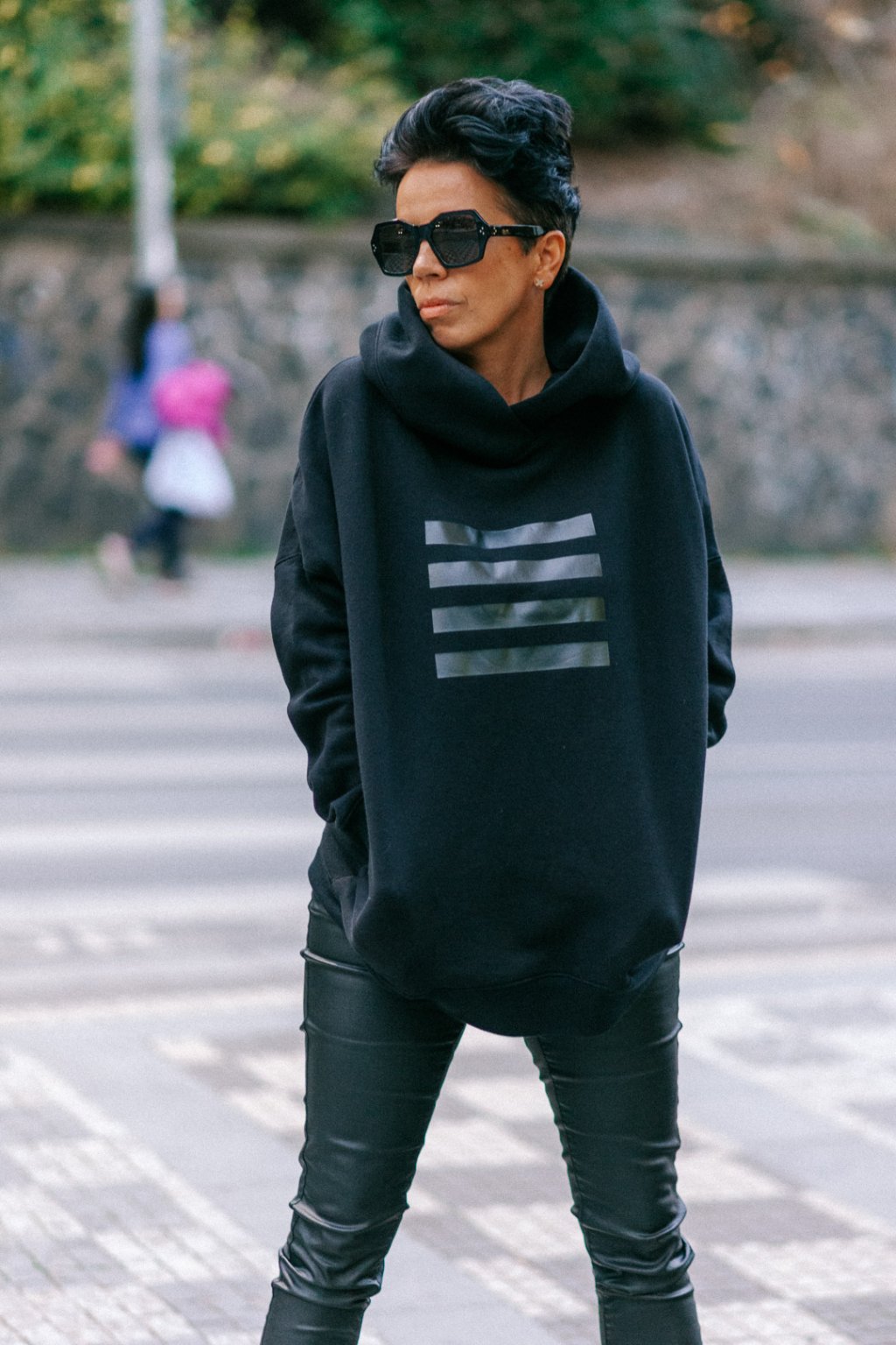 Mikina je hřejivá a velmi příjemná na nošení. Šijeme ji z počesané teplákoviny vyšší gramáže. Basic střih je mírně upraven do oversized, v ramenou je mikina široká a rukávy jsou směrem k zápěstí trochu zúžené. Švy jsou precizně prošité i zevně. Naddimenzovaná kapuce s širokým lemem, geometrický potisk a kapsy z ní dělají stylový kousek, který se výborně nosí a je skvěle kombinovatelný s kraťasy, tepláky a kalhoty z naší nabídky.