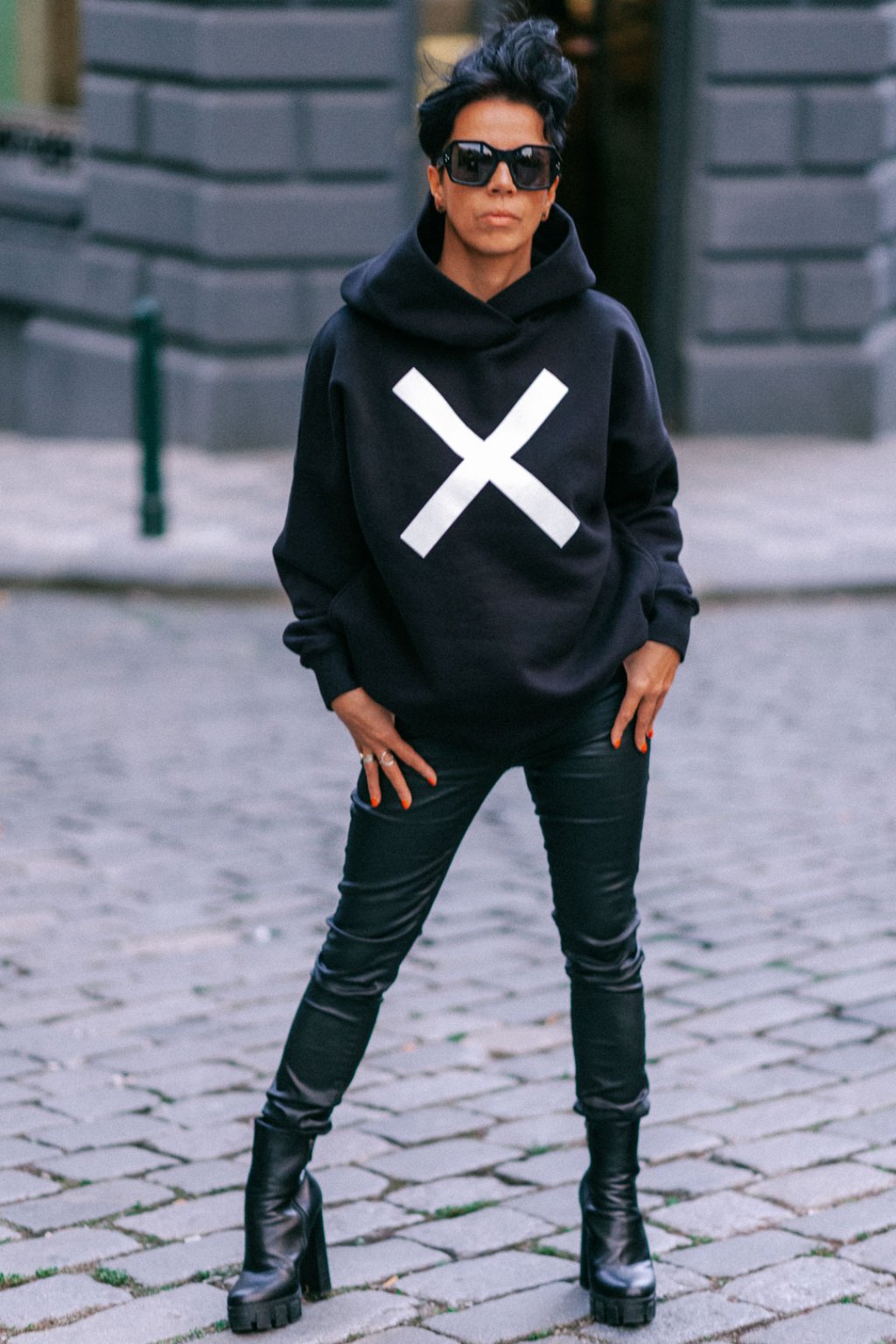 Mikina je hřejivá a velmi příjemná na nošení. Šijeme ji z počesané teplákoviny vyšší gramáže. Basic střih je mírně upraven do oversized, v ramenou je mikina široká a rukávy jsou směrem k zápěstí trochu zúžené. Švy jsou precizně prošité i zevně. Naddimenzovaná kapuce s širokým lemem, geometrický potisk a kapsy z ní dělají stylový kousek, který se výborně nosí a je skvěle kombinovatelný s kraťasy, tepláky a kalhoty z naší nabídky.