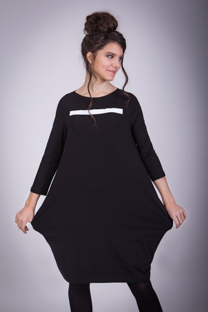 Černé úpletové šaty s lodičkovým výstřihem v oblíbené A siluetě, která zahalí jakékoliv nedostatky.