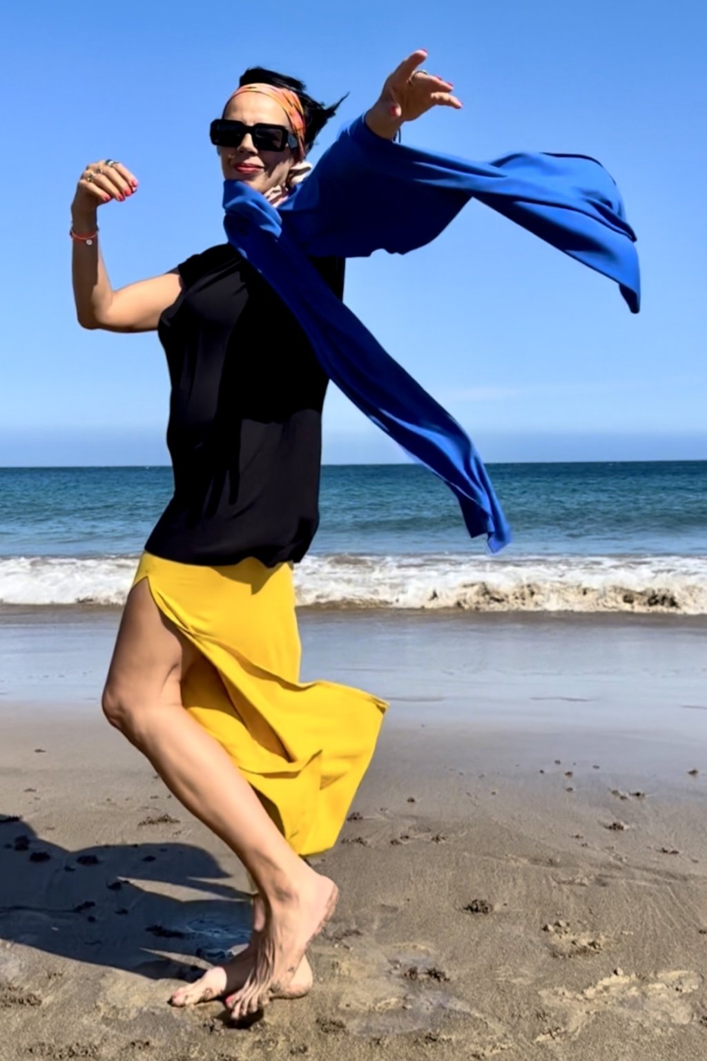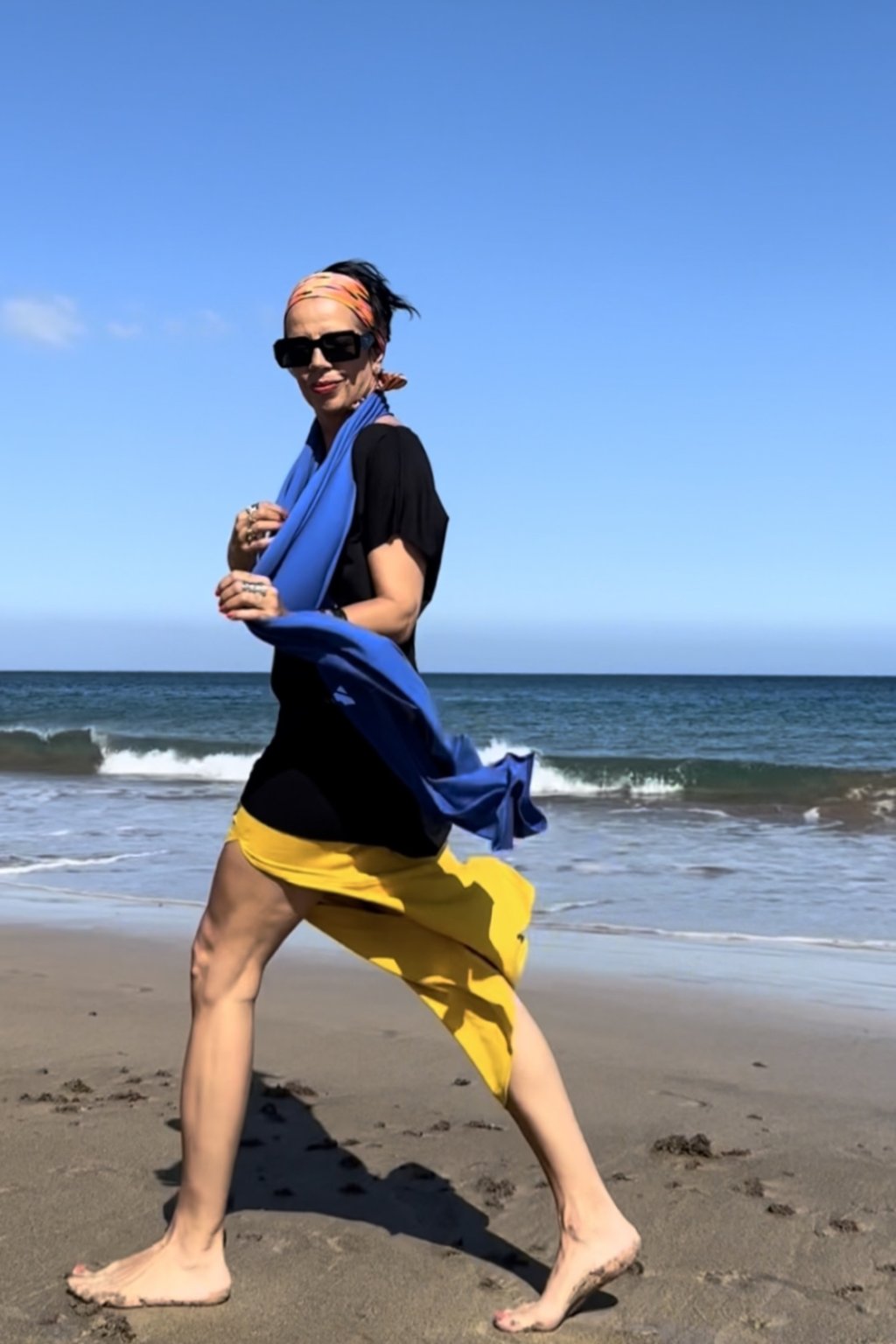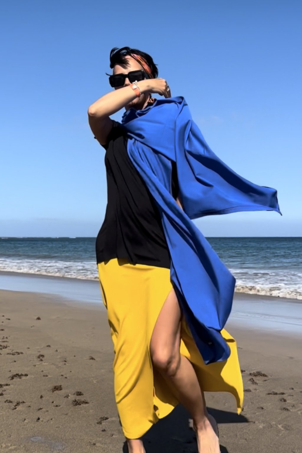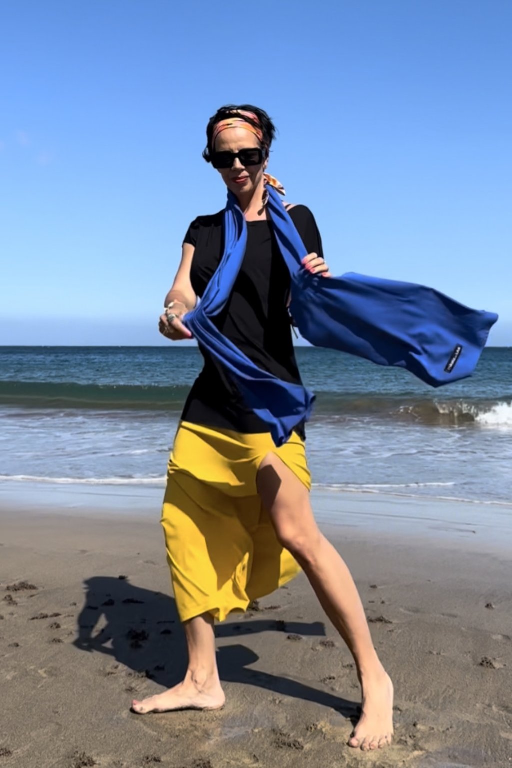 Rozměry šály 220cm (délka) a 45cm (šířka). Delší protilehlé okraje jsou nezačištěné.