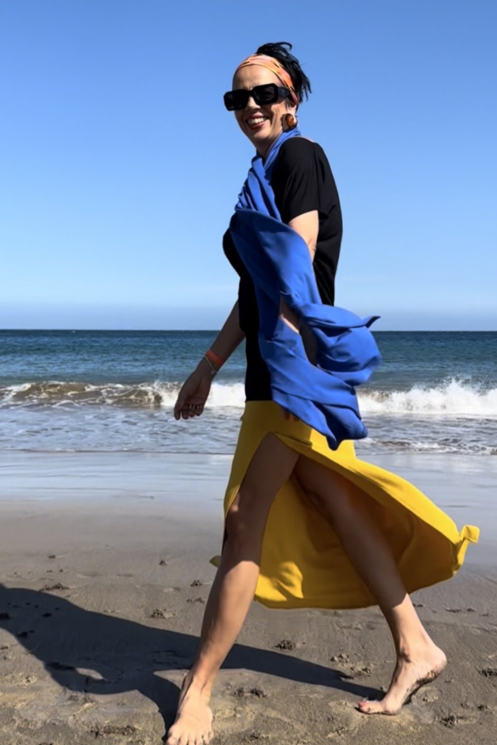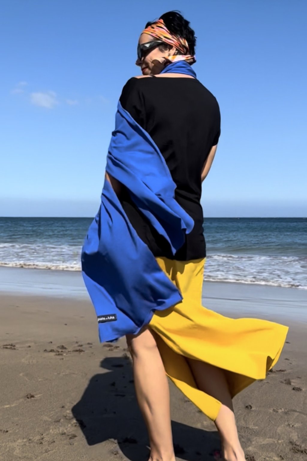 Šijeme v našich dílnách z látek od regionálnych dodavatelů. Každý kus ručně potiskávame.