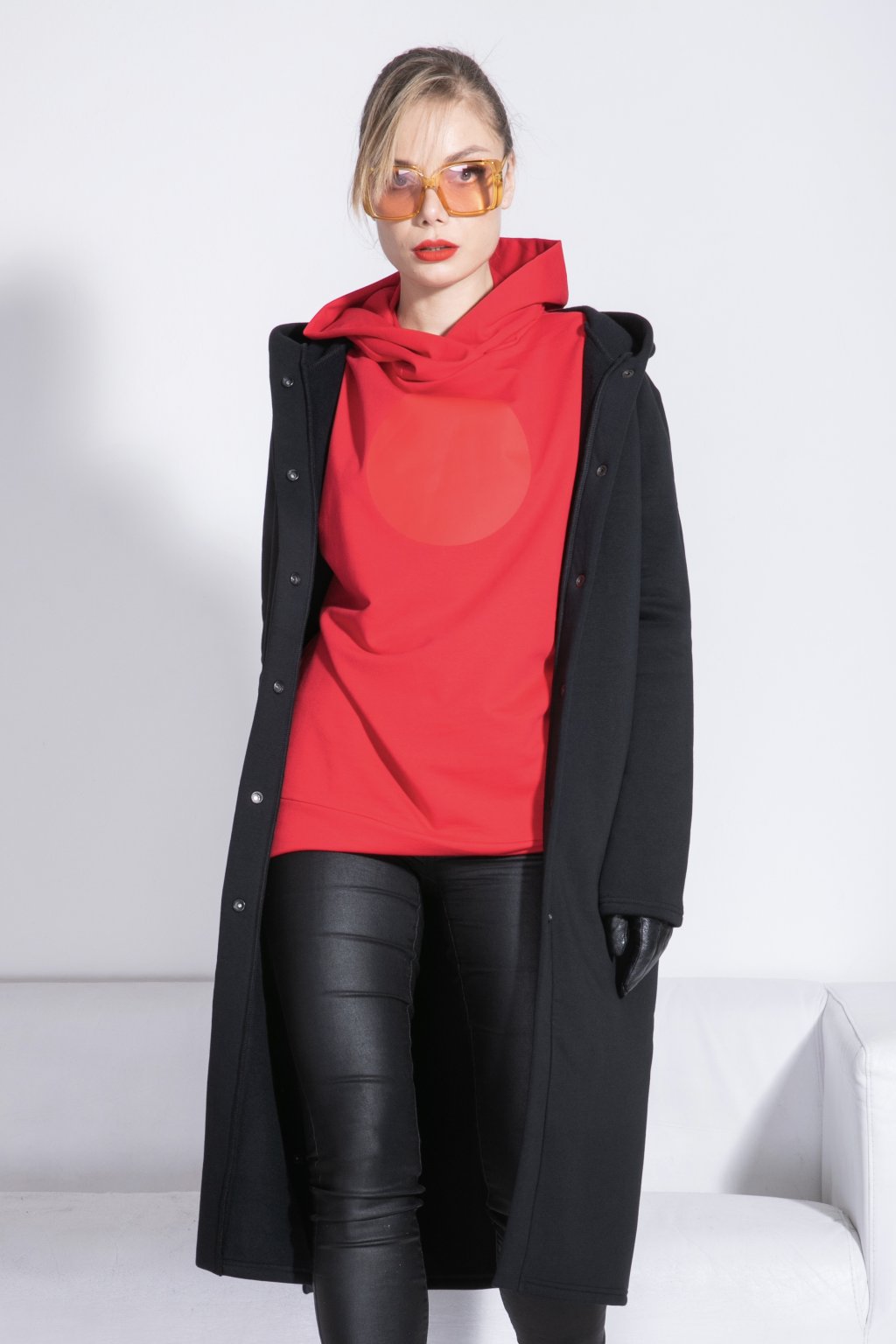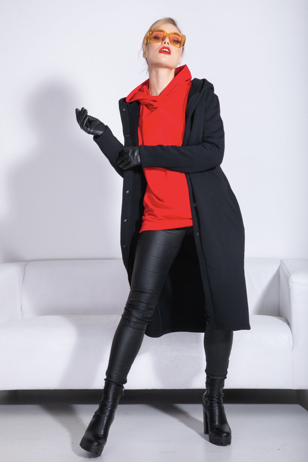 Mikinu šijeme z kvaliní teplákoviny vyšší gramáže, švy jsou precizně prošité i zevně, zapínání je na kovové černé druky (novinka v naší nabídce).