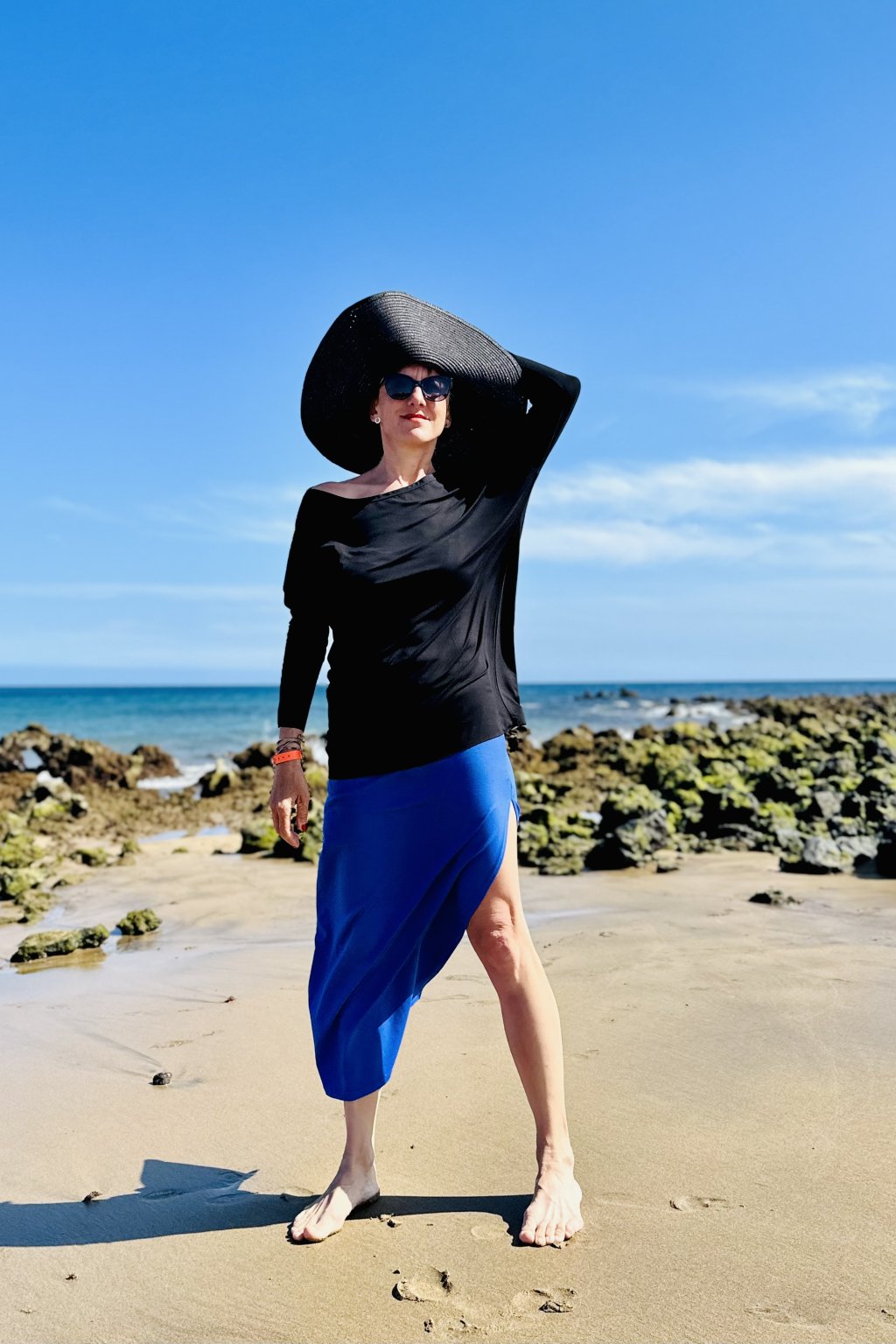 Černé bambusové triko. Hlubší lodičkový výstřih, úzký 3/4 rukáv. Rukávy a spodní lem je nezačištěn.