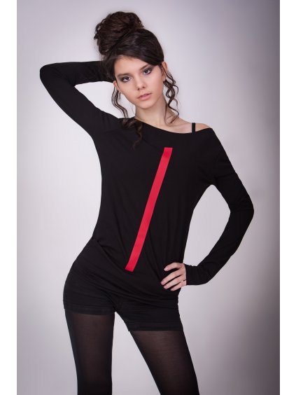Triko je úzké, v bocích víc zúžené, dlouhatánský rukáv, pro podtržení minimalismu jsou okraje rukávů i spodek nezačištěný. Lodičkový výstřih.