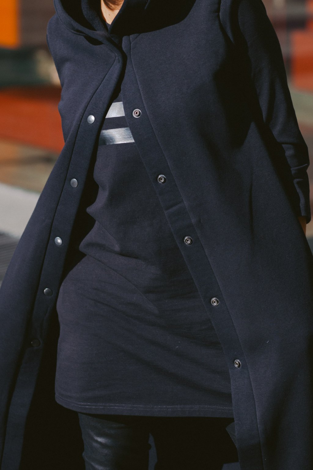 Vestu šijeme z kvaliní teplákoviny vyšší gramáže, švy jsou precizně prošité i zevně, zapínání je na kovové černé druky ).