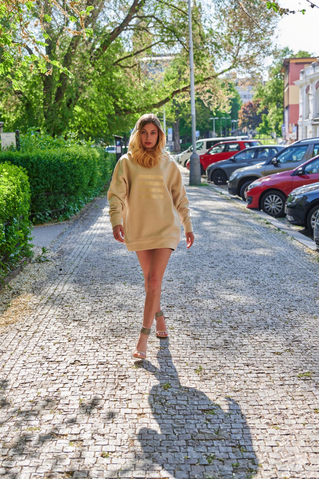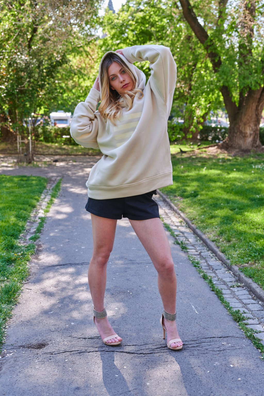 Mikina je hřejivá a velmi příjemná na nošení. Šijeme ji z počesané teplákoviny vyšší gramáže. Basic střih je mírně upraven do oversized, v ramenou je mikina široká a rukávy jsou směrem k zápěstí trochu zúžené. Švy jsou precizně prošité i zevně. Naddimenzovaná kapuce s širokým lemem, geometrický potisk a kapsy z ní dělají stylový kousek, který se výborně nosí a je skvěle kombinovatelný s kraťasy, tepláky a kalhoty z naší nabídky.