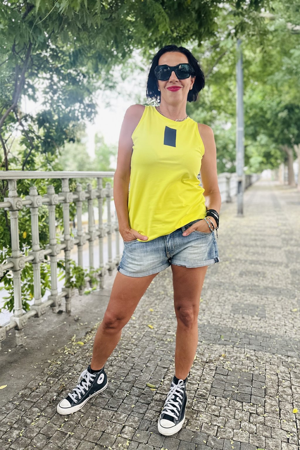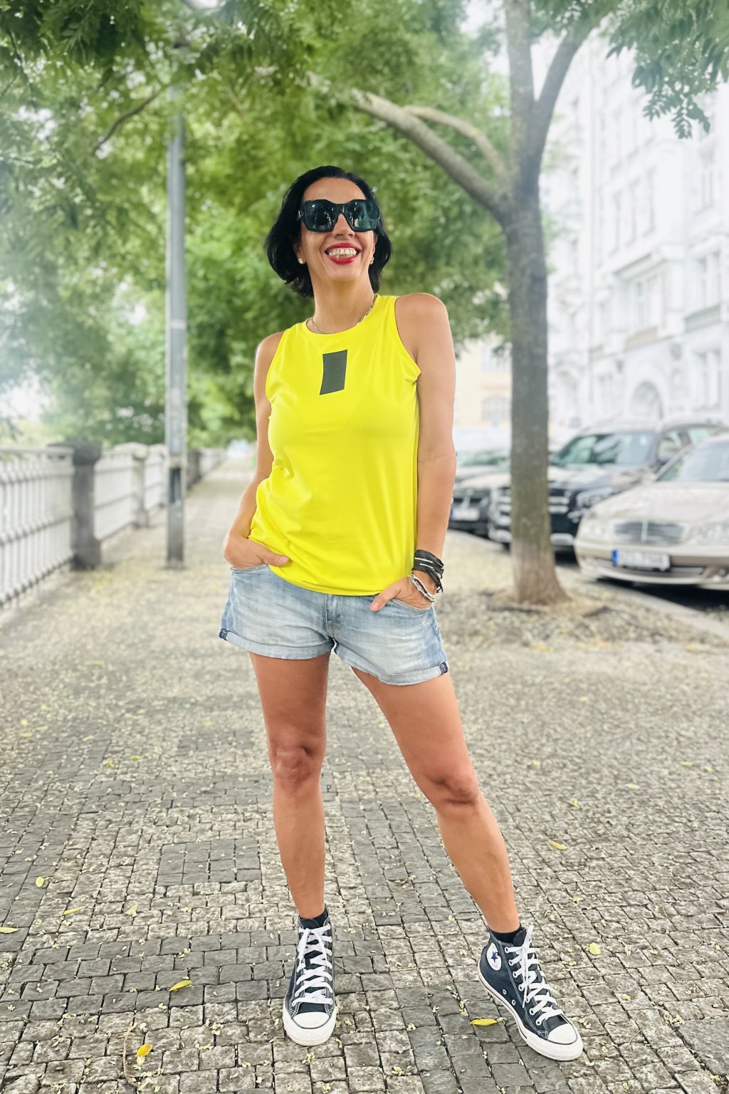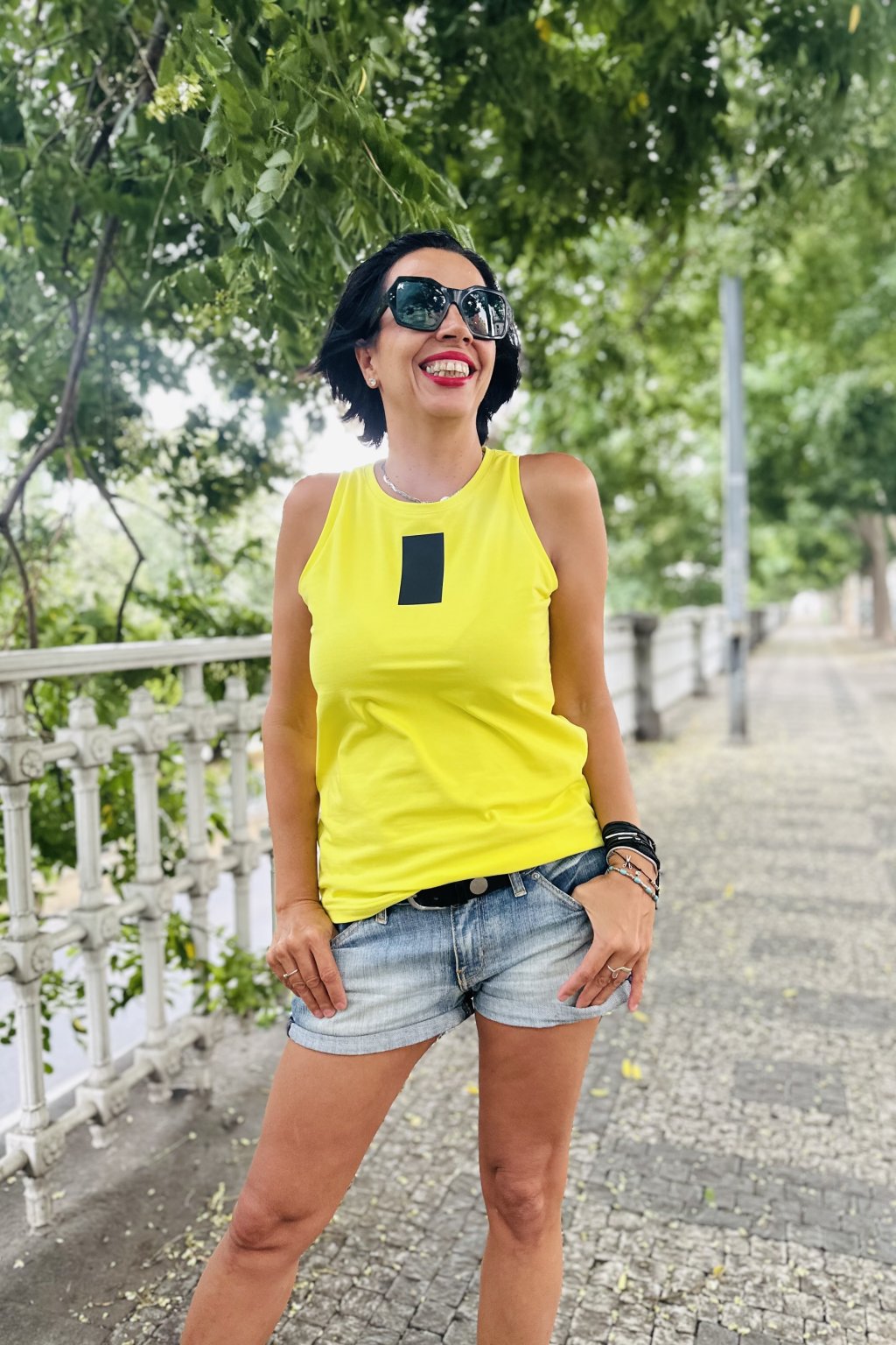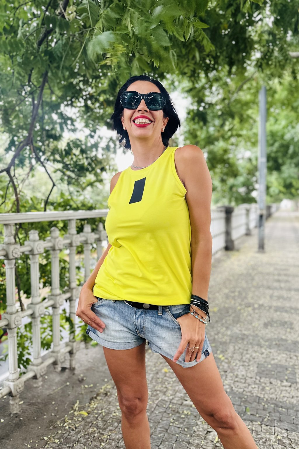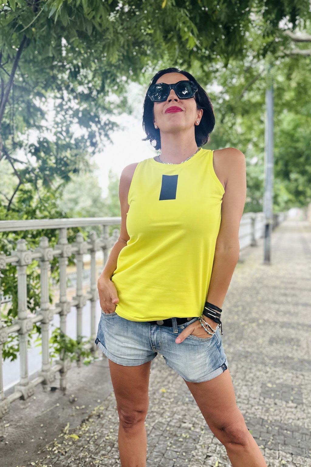 Tričko TANK - v pase mírně projmuté,bez rukávů, s kulatým výstřihem (úzký dvojitý lem).Spodní okraj začištěn.
