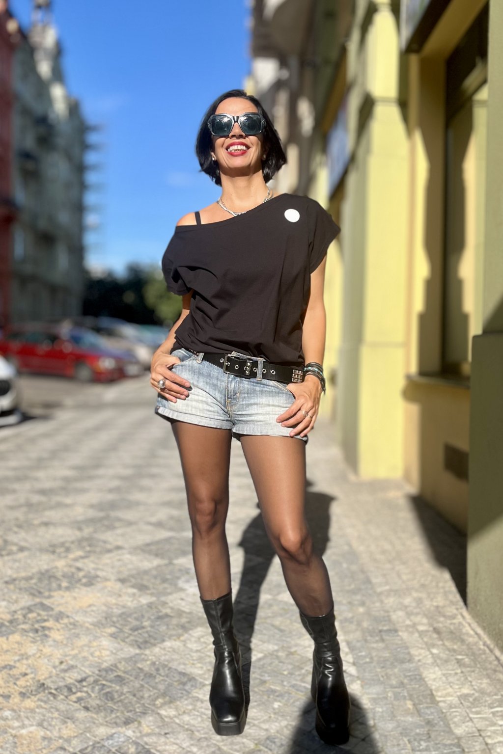 Černé úpletové tričko volného střihu. Ovesrsized. Lodičkový výstřih, kimono rukáv, spodek nezačištěn.