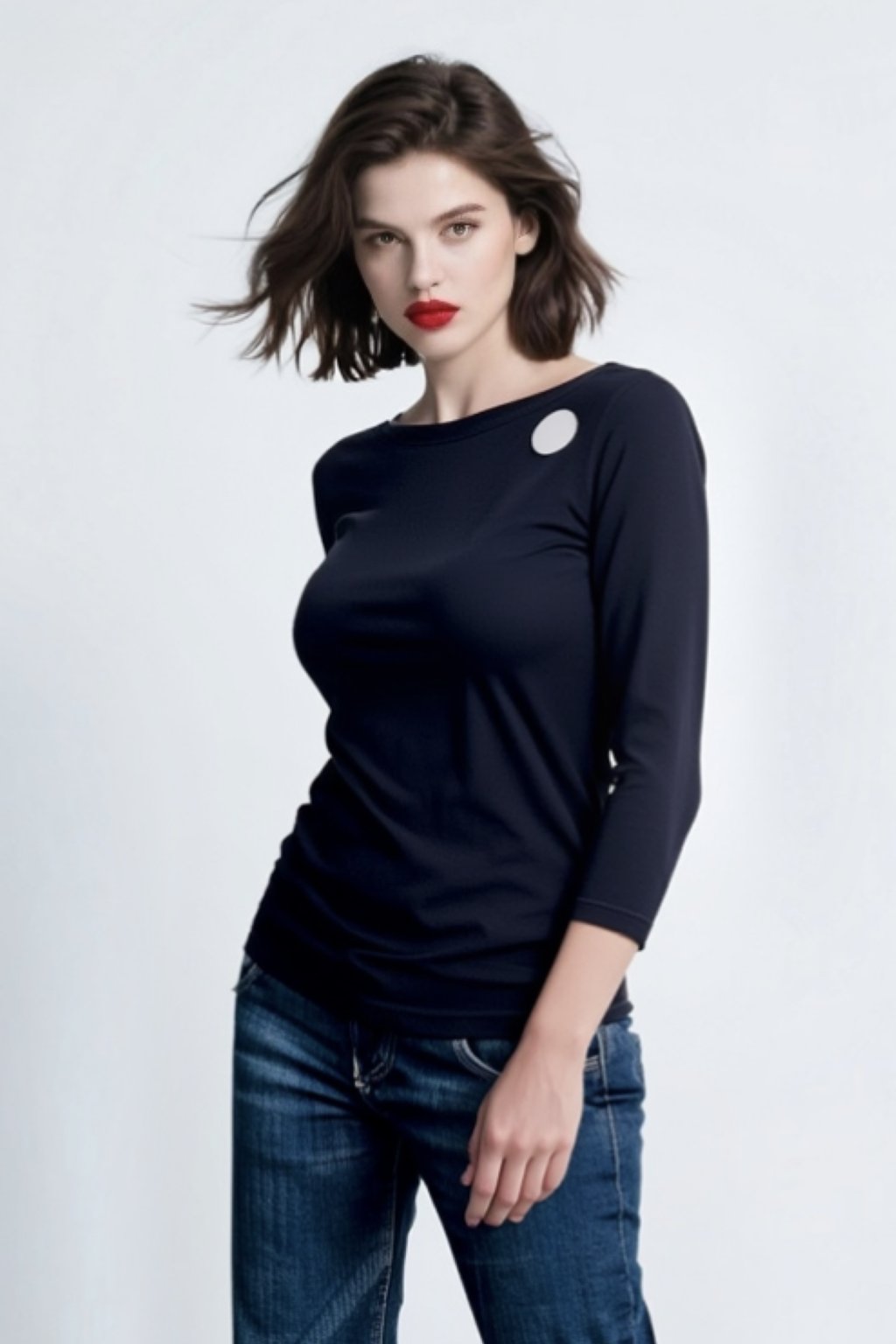 Triko je projmuté v pase s 3/4 všívaným rukávem a lodičkovým výstřihem.