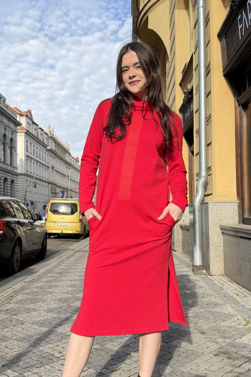 Potisk GLITTER se krásně třpytí, hodí se na slavnostnější chvíle a dodáva šatům punc vyšší elagance. Šaty jsou rovného střihu. Dlouhý raglánový rukáv. Boční kapsy.
