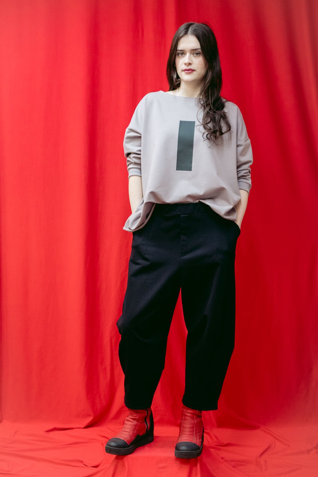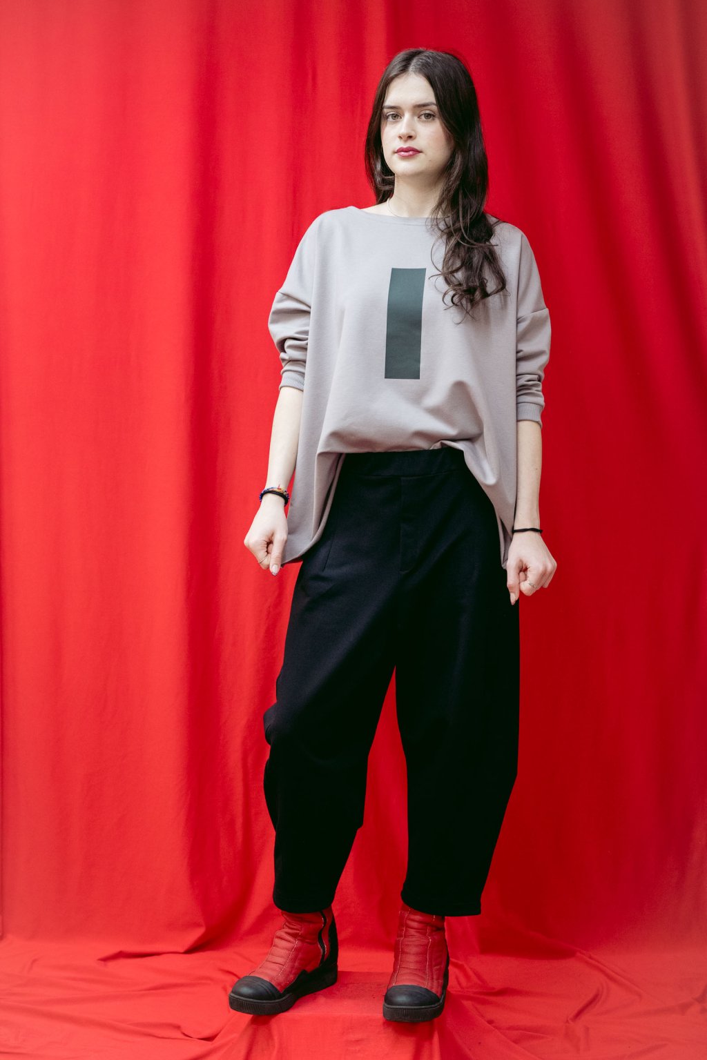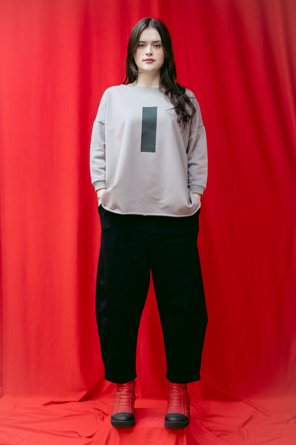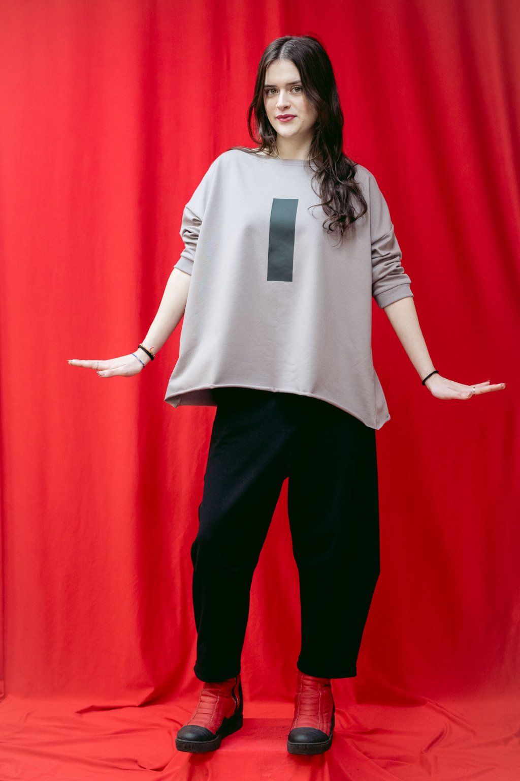 Mikina/Triko je velmi příjemná na nošení. Šijeme ji z elastické bavlněné teplákoviny. Volný střih mírně do áčka, v ramenou je mikina/triko široká a 3/4 rukáv je směrem k zápěstí zúžený a zakončený nápletem. Lodičkový výstřih. Spodní okraj nezačištěný.