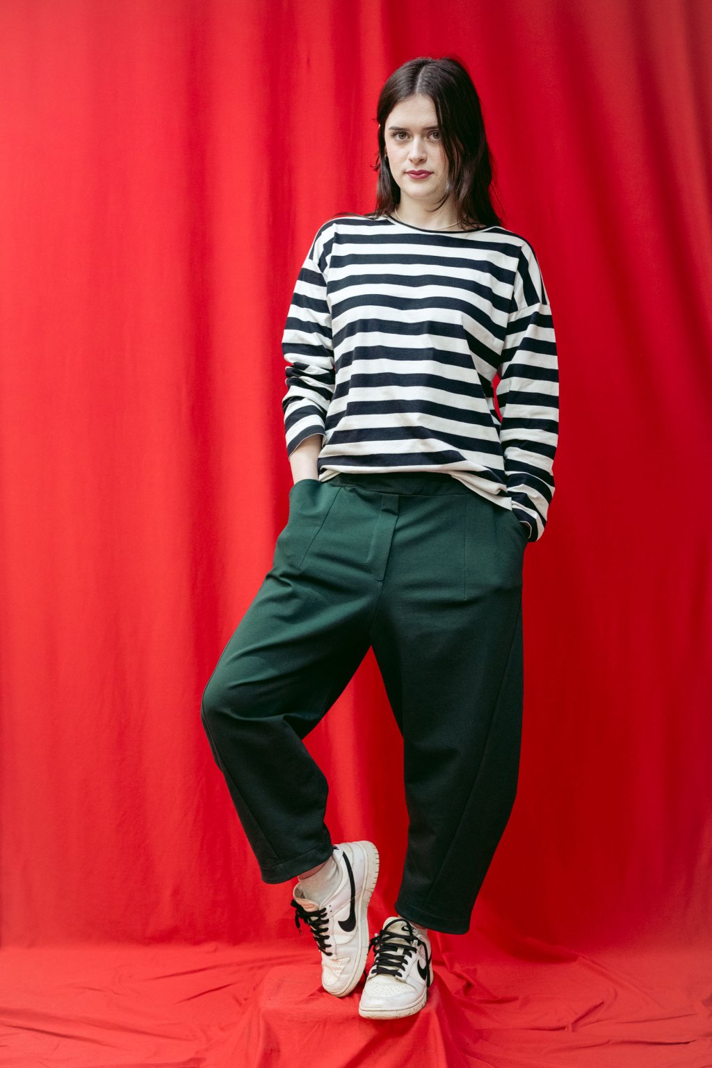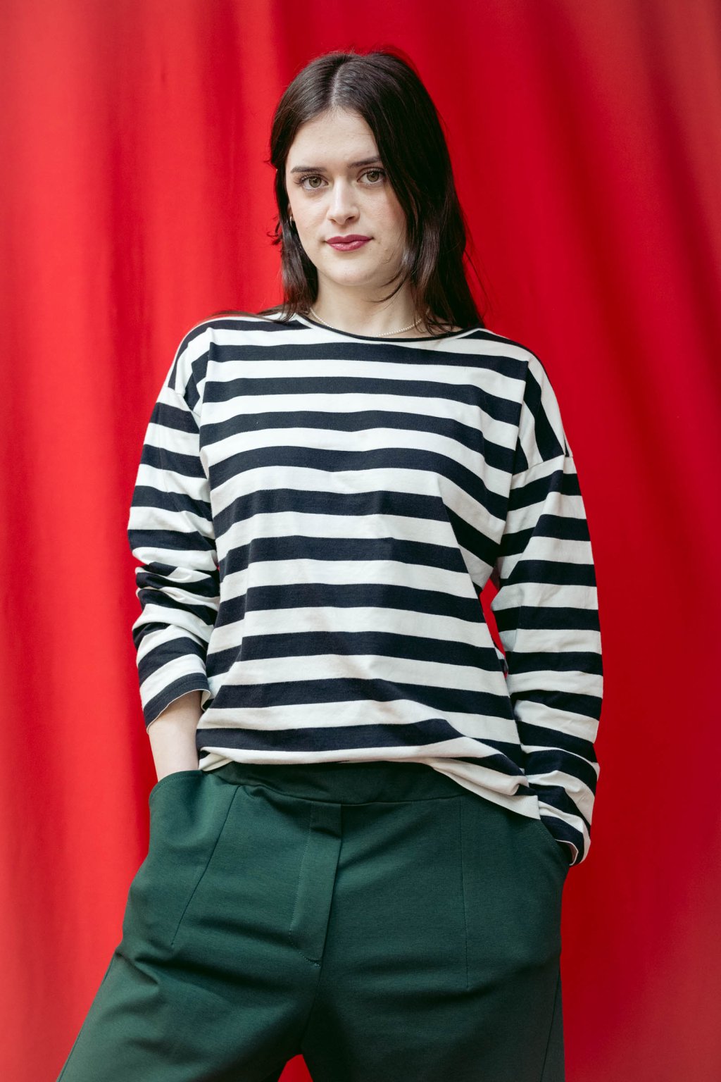 Proužky a zase proužky. Nahoďte originální černo-bílé proužkované tričko s dlouhým rukávem a vyražte třeba s kamarádkou na kávu. V chladnější dny poslouží tričko jako skvělý základ pro vrstvení.