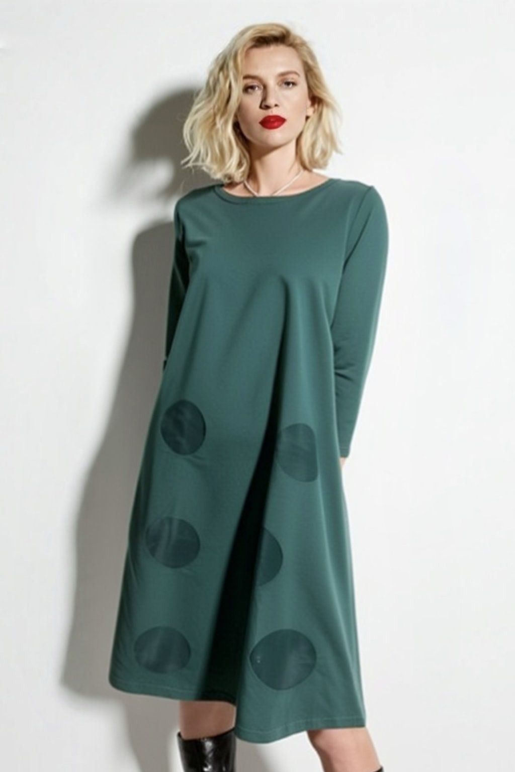 Šaty mají lodičkový výstřih a všívaný 3/4 rukáv.